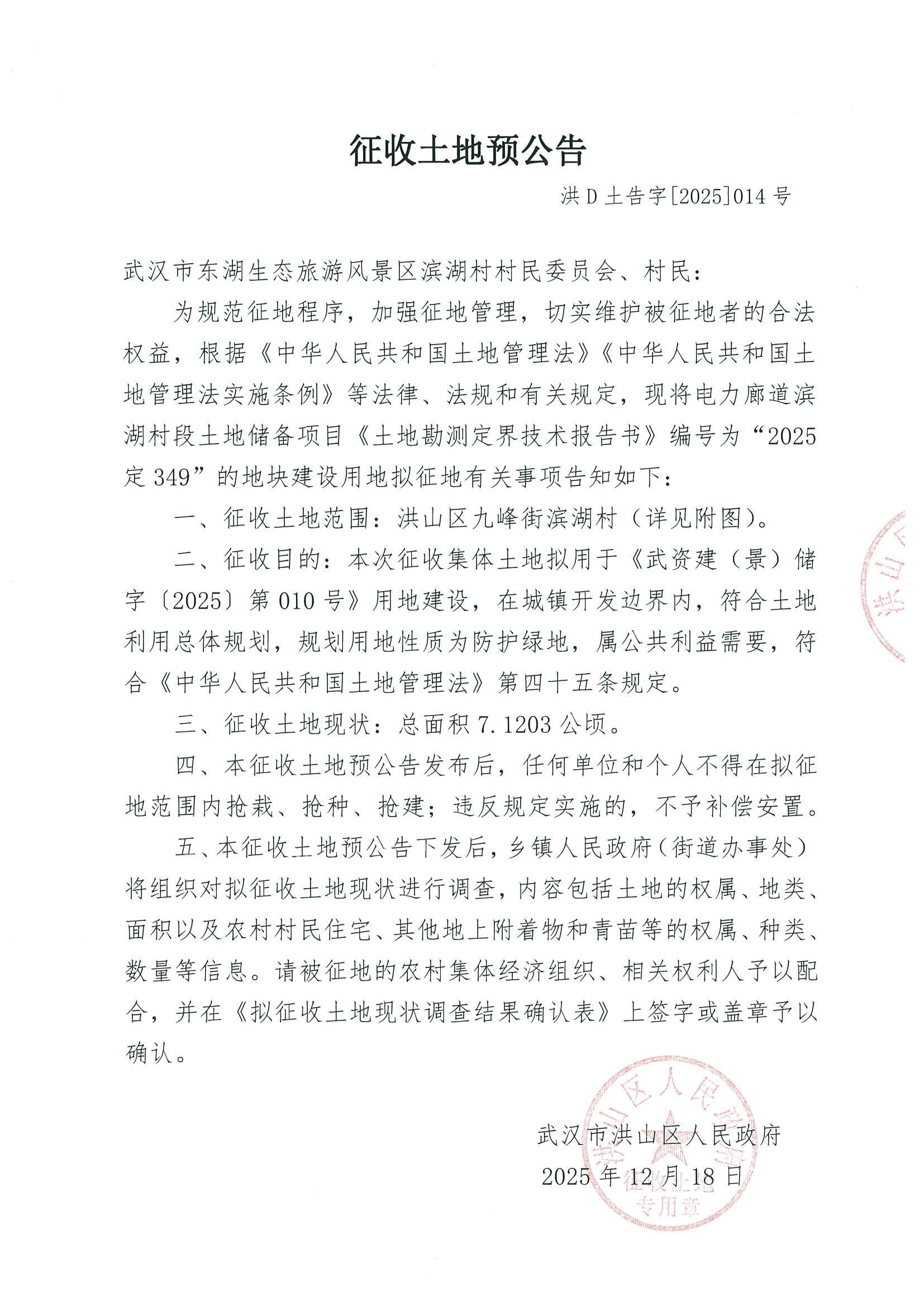 征收土地预公告(洪D土告字[2025]014号)