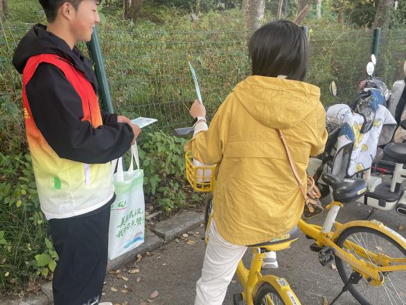 武汉生态环境志愿服务总队东湖风景区分队志愿者为游客普及环保知识